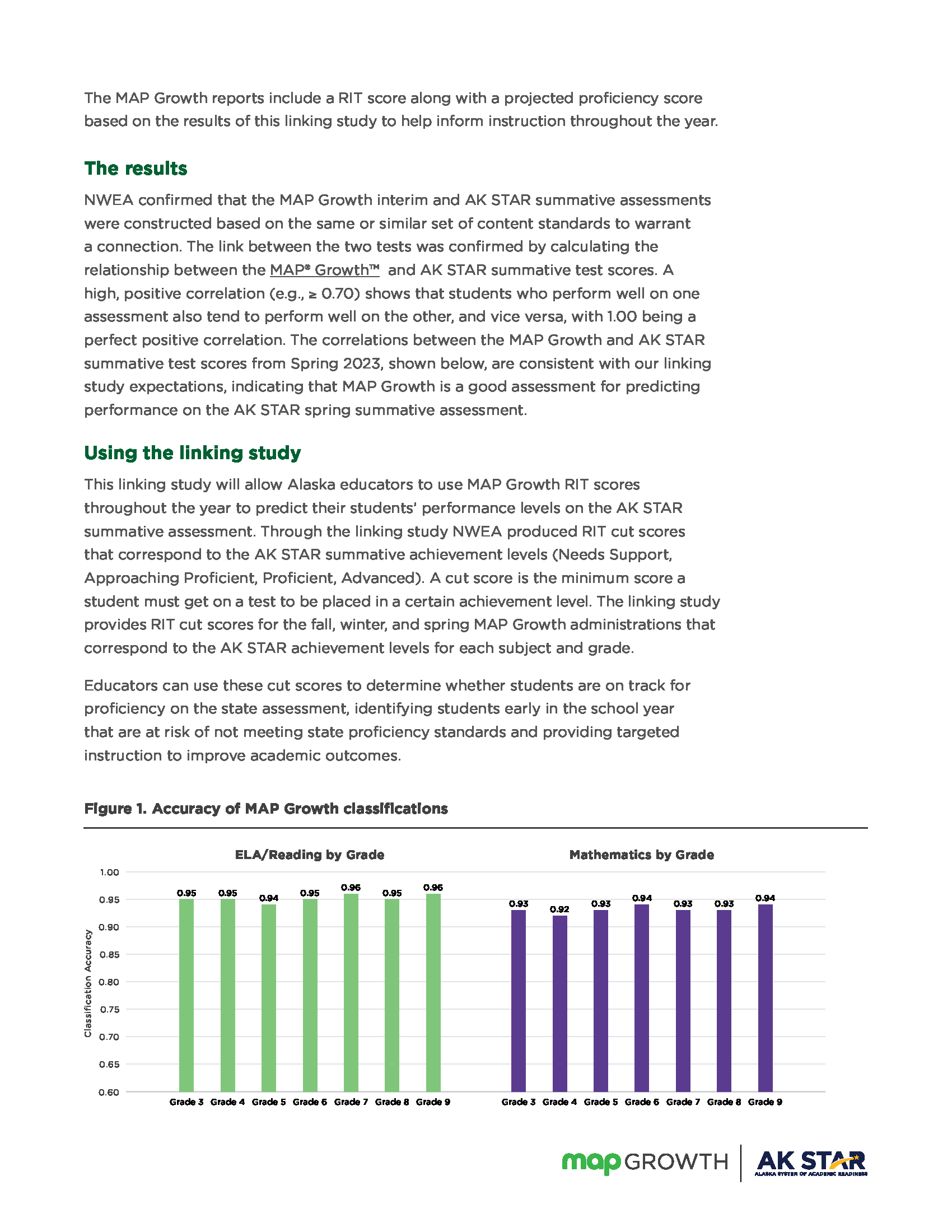 - Increase opportunity for students and schools to show growth. Fall-to-spring and year-to-year growth data, along with access to normative data, are available to both districts and DEED. Within-year growth data enables all students and educators to show and celebrate growth and provides districts with a more complete view of school performance as they work to ensure equitable educational rigor and resources for all Alaska students.
